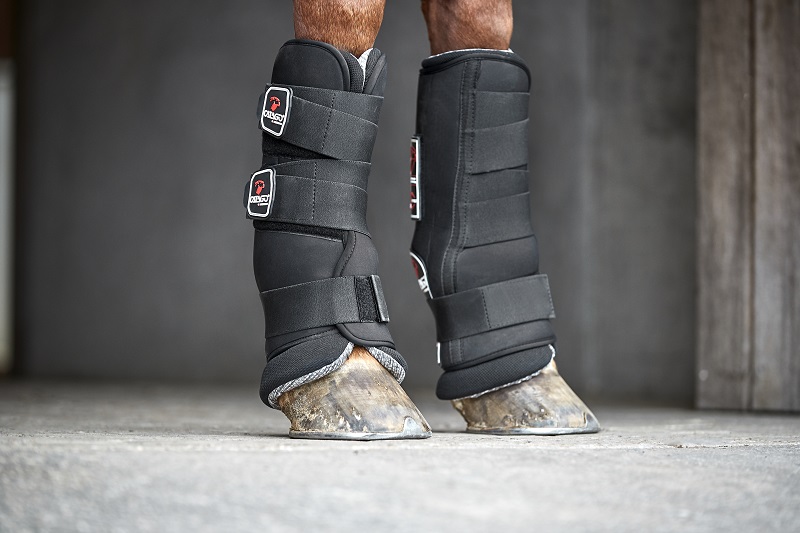 Trek stal- en transportbeschermers niet te strak aan. Ze moeten stabiel liggen, maar het been moet comfortabel blijven zonder knelpunten (zeker bij langer transport of stalrust).