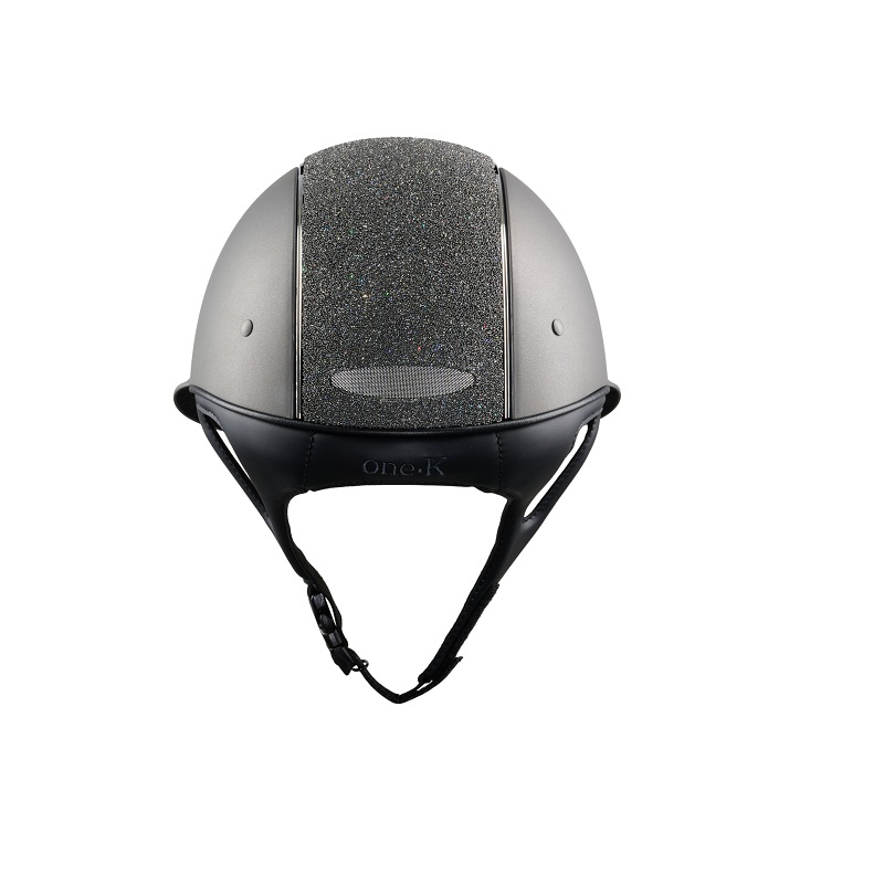 De OneK Avance MIPS cap mat grijs met glitter top en chrome front is een elegante keuze voor ruiters die op zoek zijn naar een cap met een rustige, luxe uitstraling én extra veiligheid. De mat grijze schaal geeft deze cap een verfijnde look, terwijl de glitter top en het chrome front en rail zorgen voor net dat beetje extra glamour.